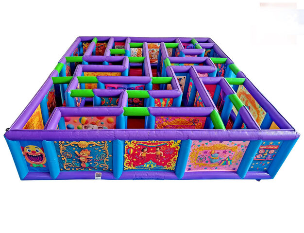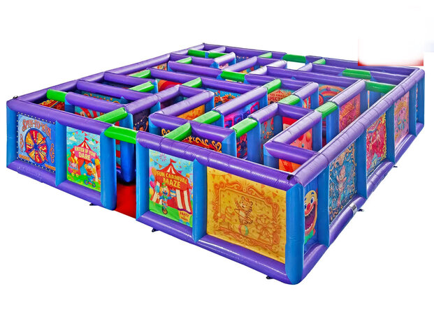 This vibrant inflatable fun carnival maze brings the energy of a classic carnival to life. Featuring colorful artwork inside and out, including clowns and festive carnival details, it creates an immersive and exciting experience that stands out at any event. Participants of all ages will enjoy exploring the twists and turns of the Fun Carnival Maze. The bright visuals and playful theme make it a top pick for rentals, parties, and school events. So much fun in one big maze!Whether you’re planning a carnival party, school event, or hosting a festival, the Fun Carnival Maze is sure to attract attention and deliver serious fun. Add the Fun Carnival Maze to your party and set yourself apart with a unique carnival experience.